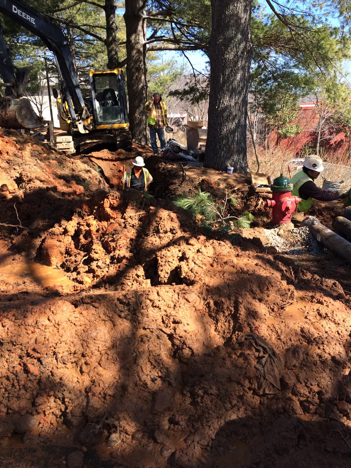 The story goes the rennovated Swannanoa Valley History Museum had to be brought up to code, with a new sprinkler system. But some new lines had to be laid along where the fire hydrant water line was...so they dug along our parking lot.