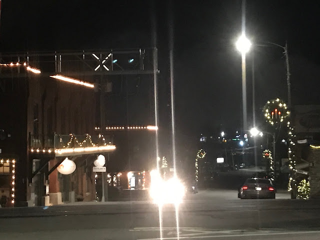 Looking down the street past the depot, not sure what the name of that street is! Designs of lights at night.